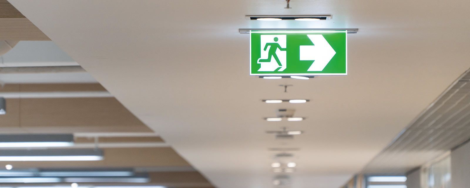 sécurité contre l’incendie et de permettre une évacuation rapide et fluide des personnes, nous installons un éclairage de sécurité. Il prend le relais lors de coupure de courant et aide au bon déroulement des opérations de secours.